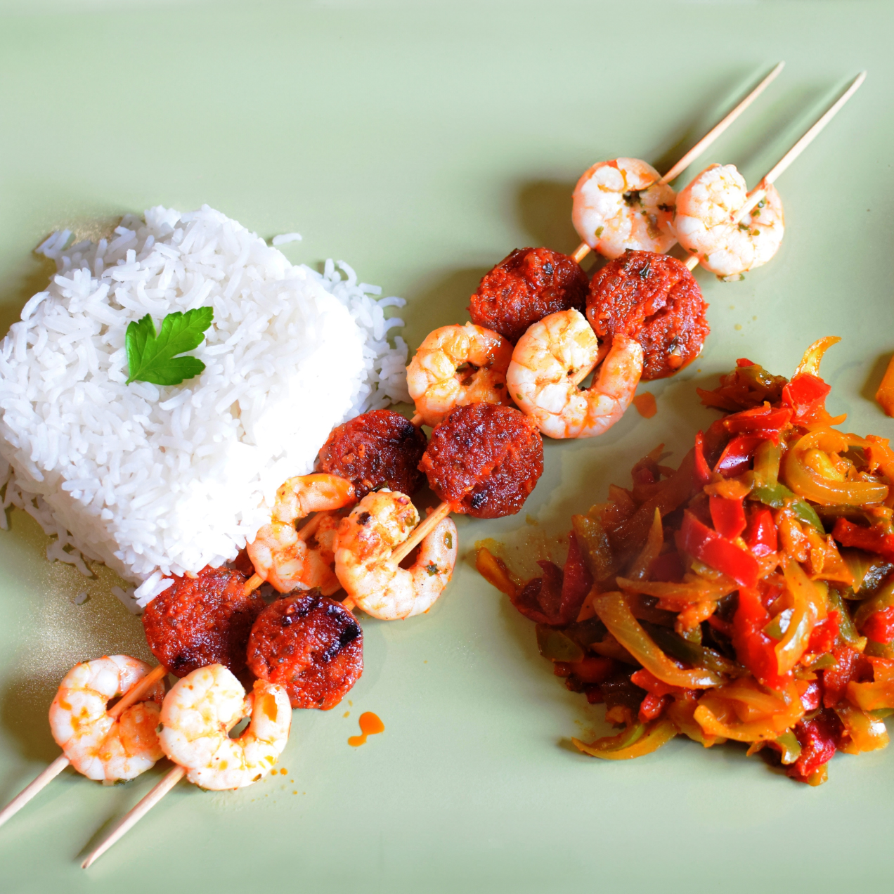 BROCHETA DE CHORIZO Y LANGOSTINOS