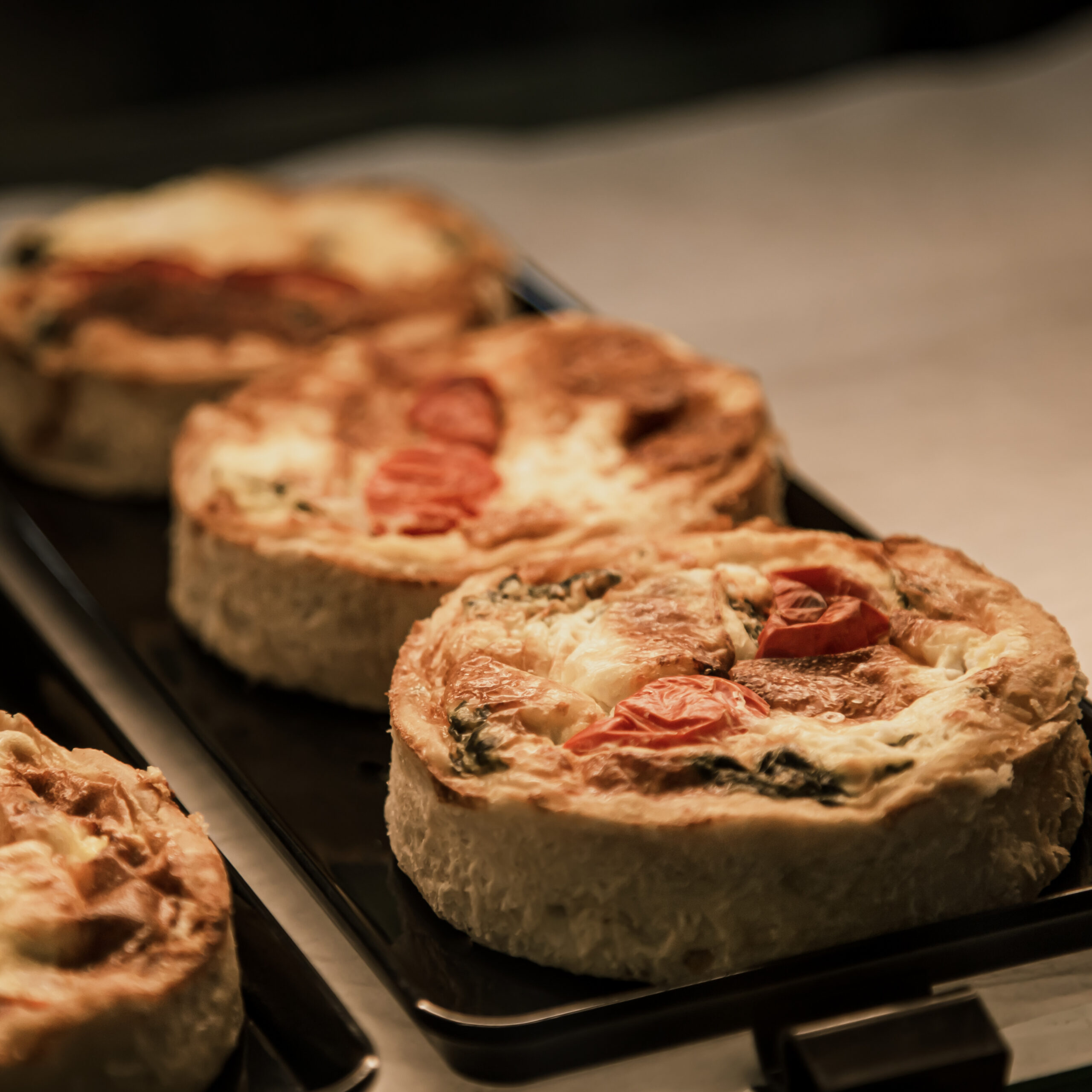 - Hornea la Quiche: Hornea durante 30-35 minutos o hasta que la superficie esté dorada y el relleno firme.